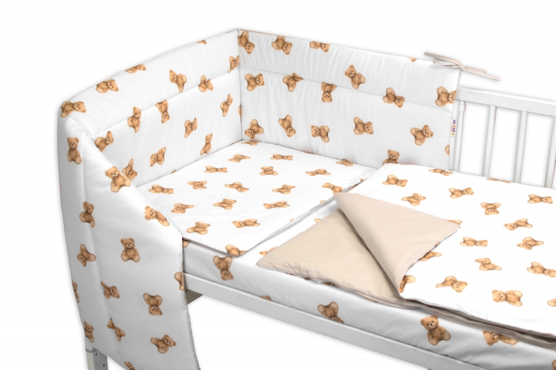 Sada obsahuje: obliečku na prikrývku, obliečku na vankúš a mantinel.