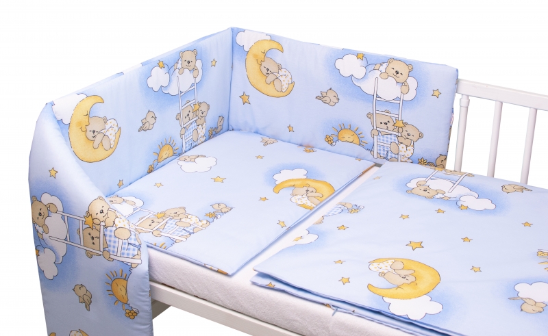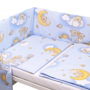 120×90 – obliečky na perinku 120x90cm, obliečky na vankúšik 40×60 cm, mantinel 60x60x60cm – na postieľku 120x60cm.