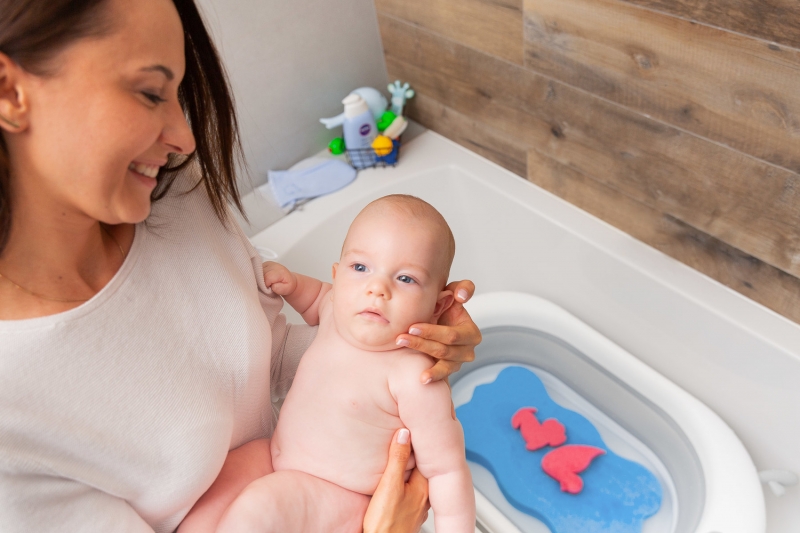 Umožňuje dieťaťu udržiavať vhodnú polohu vo vani a obmedzuje tak možnosť udusenia vodou.