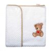 Elegantná detská deka je príjemná na dotyk, vďaka čomu nedráždi jemnú pokožku bábätka a zároveň zaisťuje výmenu vzduchu – je možné ju používať už od prvých dní.