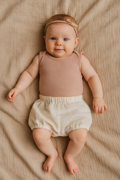Naše detské bloomersy zo 100% bavlneného mušelínu sú mäkké, ľahké a priedušné – ideálne pre citlivú pokožku aj horúce letné dni. Vďaka všitej gumičke sa jednoducho obliekajú a zabezpečujú maximálny komfort počas celého dňa.
