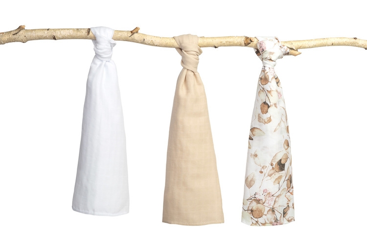 Mušelínové plienky sú nevyhnutné v prvých mesiacoch života dieťaťa. Vďaka jemnej bavlne nedráždia detskú pokožku a nespôsobujú alergie. Jemná tkanina umožňuje detskej pokožke dýchať a je preto perfektná aj v horúcich dňoch. Každá sada obsahuje módne vzory v tlmených farbách, ktoré dohromady tvoria jedinečnú sadu.