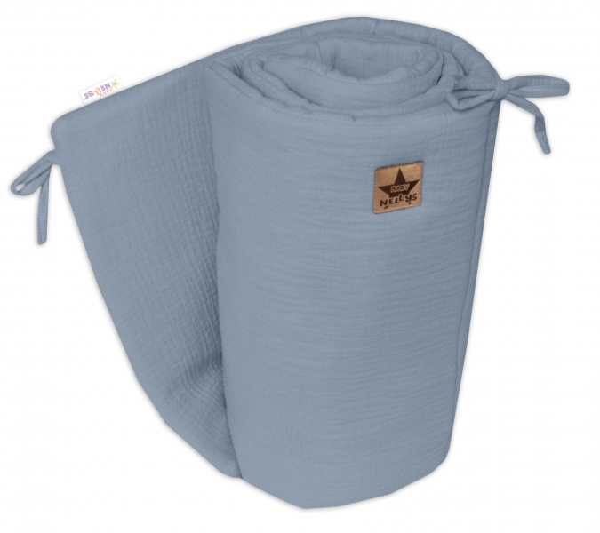 Mušelínový mantinel je mimoriadne príjemný a jemný k detskej pokožke, vďaka čomu je dokonalý už od prvých dní života.