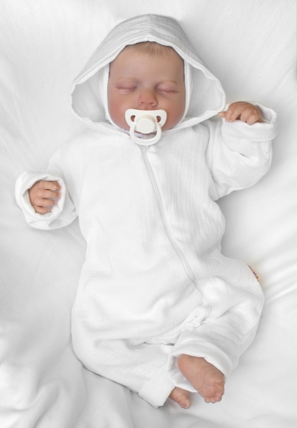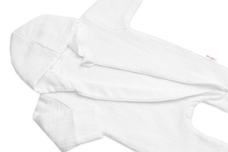 Dvojvrstvový mušelínový overal s kapucňou.