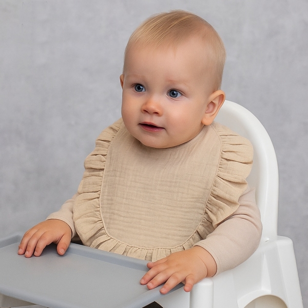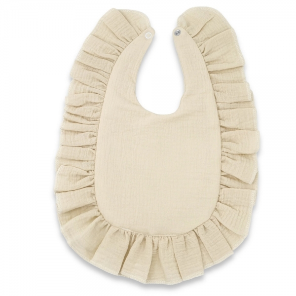 Podbradník s volánikom Baby Nellys, nepremokavý, vyrobený z jemného mušelínu (dvojitá gázovina), 100 % bavlna.