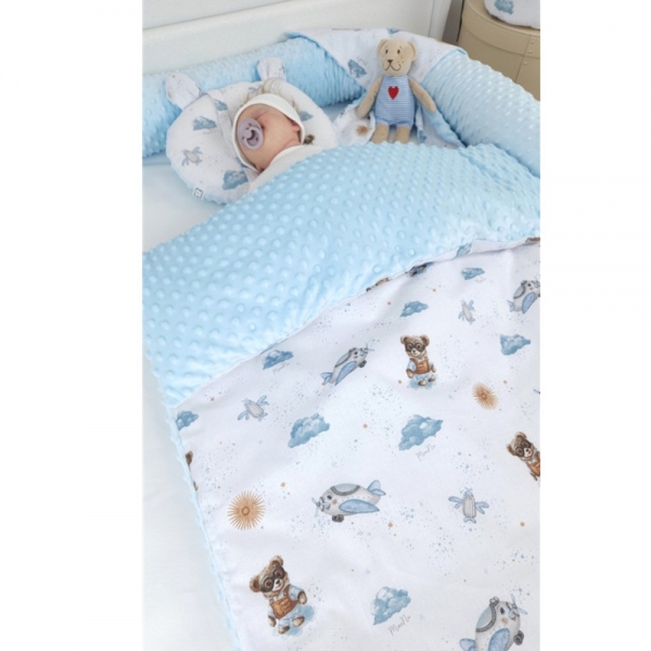– Dvojfarebný dizajn: Deka je obojstranná a vďaka svojej pastelovej farebnej škále ľahko zladíte s detskou výbavou.