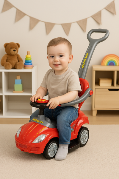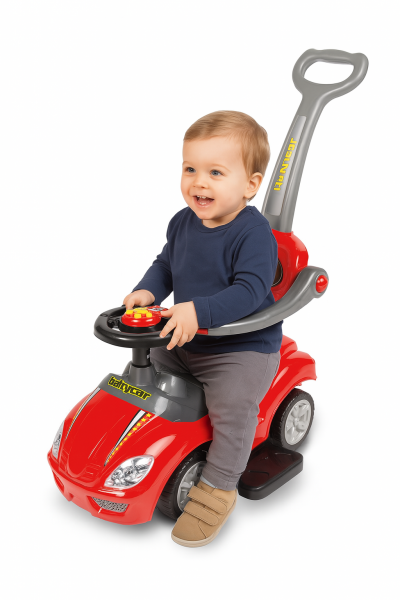 Zvukový panel na volante prináša ešte viac zábavy. Odrážadlo podporuje rozvoj motoriky a rovnováhy. Stabilizačná zadná opierka chráni pred prevrátením.