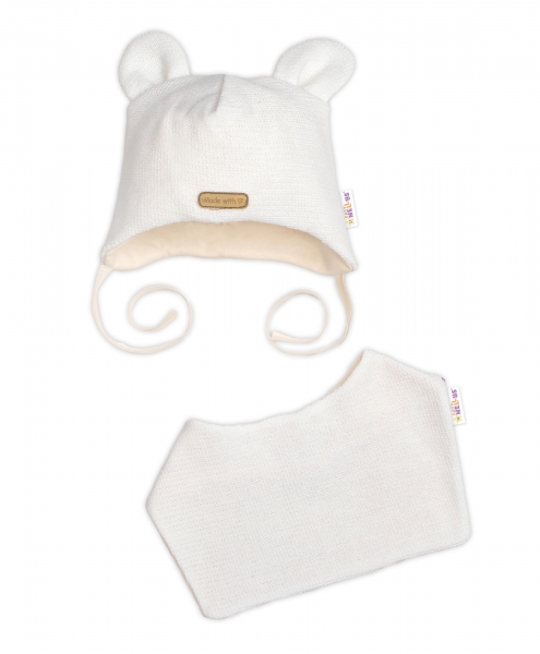 Pletená čiapka s bavlnenou podšívkou a šatkou 2v1 Teddy Hand made Baby Nellys je ideálnou voľbou!