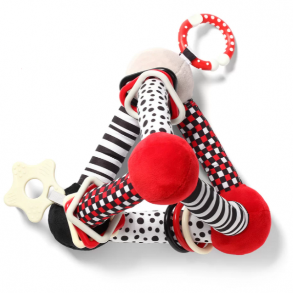 Táto hračka v tvare pyramídy umožňuje deťom získať nové zručnosti: precvičovať uchopenie, prenášať pohyblivé prvky, prijímať hmatové vnemy. Okrem toho stimulujú ďasná pomocou kousátek s výstupkami a zaručujú tiež skvelú zábavu.