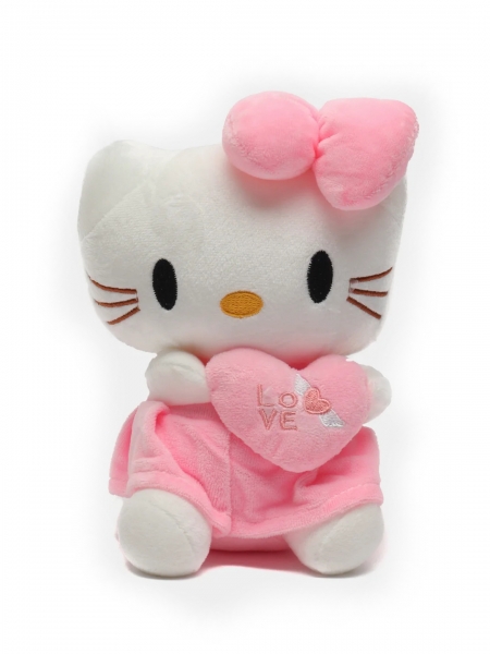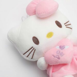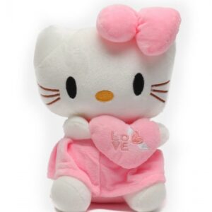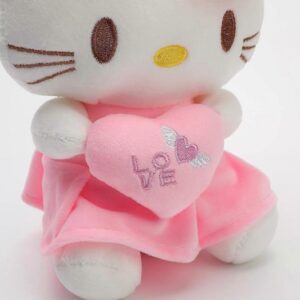 Hračka je vyrobená z kvalitného, hebkého plyšu, ktorý je príjemný na dotyk. Výplň tvorí jemné duté vlákno, ktoré zabezpečuje mäkkosť a pružnosť aj pri dlhodobom používaní. Vďaka precíznemu spracovaniu a pevnému šitiu je vhodná nielen na hraníčky, ale aj ako dekorácia do detskej izby. Typická mašlička na ušku a vyšívané srdiečka na nožičkách dodávajú hračke nežný vzhľad a symbolizujú lásku a priateľstvo, ktoré Hello Kitty reprezentuje. Jemné ružové odtiene oslovia najmä malé slečny.