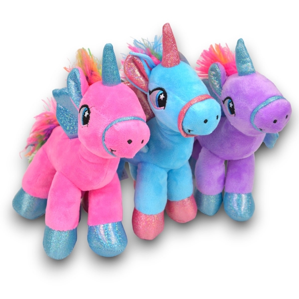 Plyšová hračka Jednorožec, je krásnym a kúzelným prírastkom do kolekcie plyšových hračiek každého dieťaťa. Tento ružový jednorožec má dúhový chvost a hrivu a lesklé modré detaily na krídlach, rohu, ušiach a kopytoch, ktoré dodávajú hračke elegantný a magický nádych. Bezpečné materiály sú zárukou kvality a trvanlivosti. Vyrobený z kvalitného jemného plyšu, je príjemný na dotyk, čo z neho robí ideálneho spoločníka na hranie, spanie i objatie. Jednorožec je navrhnutý tak, aby ho samostatne stál, takže ho možno ľahko umiestniť na posteľ alebo poličku ako dekoratívny prvok. Odporúčané pre deti od 3 rokov. 19 x 13 cm (v x š x h)