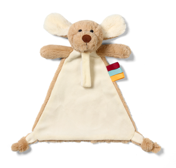 Je to viac ako len plyšová látka. Má tiež praktický prívesok na cumlík a farebné štítky nabádajú k hre a objavovaniu sveta.