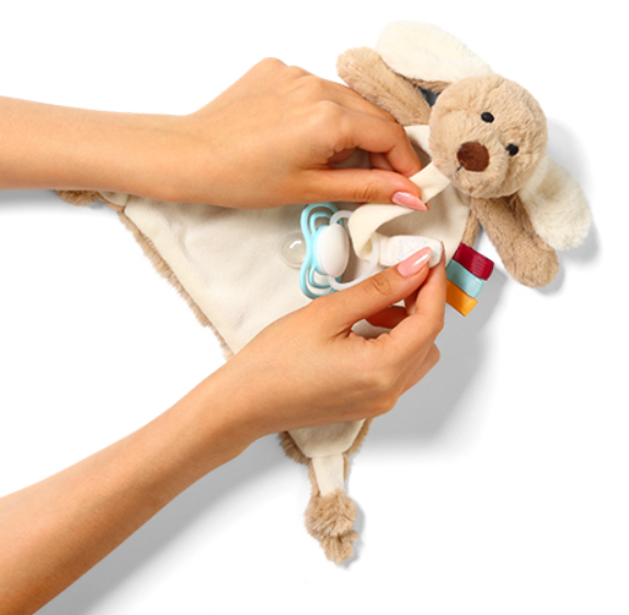 Cumlíky rady padajú a miznú medzi hračkami. Držiak na cumlík je praktickým doplnkom plyšového hračka pre bábätká, ktorý ho nenechá stratiť a ušpiniť.