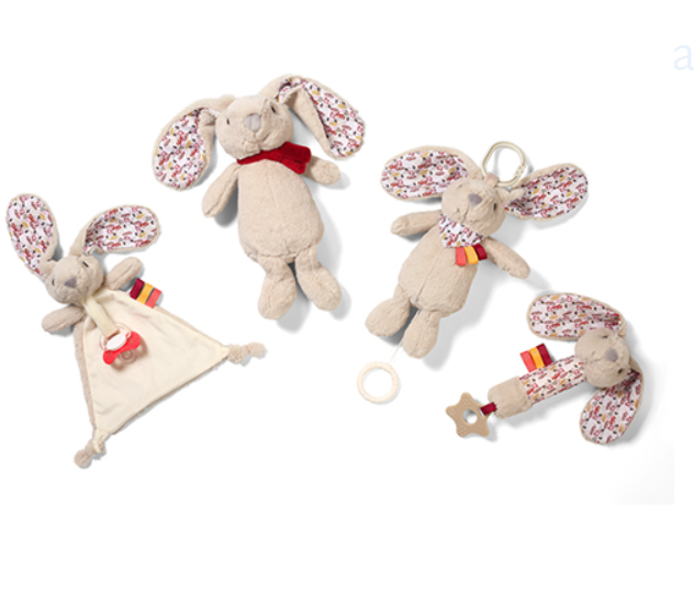 Je to viac ako len plyšová látka. Má tiež praktický prívesok na cumlík a farebné štítky nabádajú k hre a objavovaniu sveta.