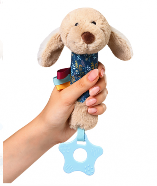 Plyšová hračka s pískatkom a hryzátkom.