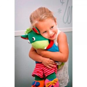 Jeho veselé farby a očarujúce vzhľad z neho robia spoločníka počas rôznych hier. Dieťa sa postupne naučí zapínať zips, gombíky alebo viazať šnúrky. Vďaka tejto zručnosti sa budú môcť deti v budúcnosti obliekať samostatne.
