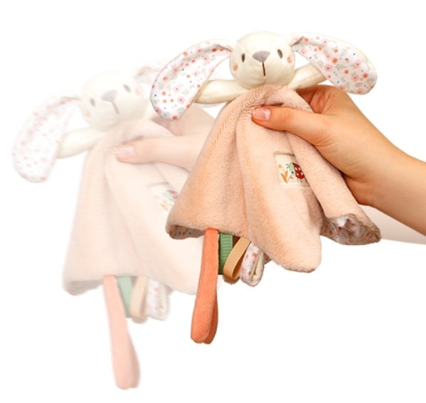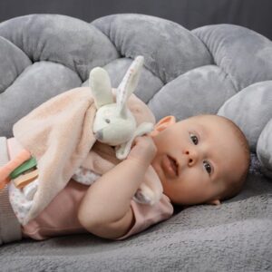 Baby Bunny kombinuje deku a plyšovú hračku. Zvyšuje pocit bezpečia – batoľa má svoju obľúbenú hračku vždy na dosah. Stimuluje zmysly dieťaťa. Dlhé králičie uši a farebné uzly pomáhajú rozvíjať obratnosť. Malí ich tiež radi chytia kvôli rôznym pútavým farbám a vzorom. Plyšák má tichú hrkálku. Jemne stimuluje sluch dieťaťa a vzbudzuje jeho záujem. Plyšový materiál deky je veľmi jemný na dotyk.