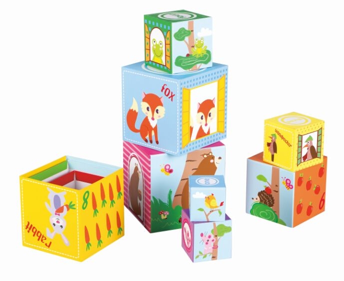 Farebné kocky sú vyrobené z pevného kartónu.