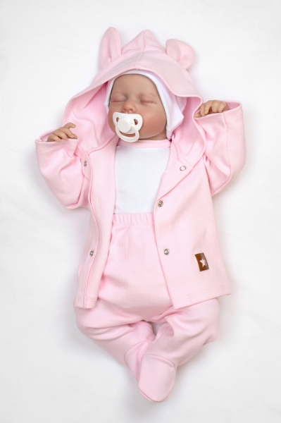 Rebrovaná sada, Star 5D, body, polodupačky, kabátik, čiapka, rukavice – rúžová, biela