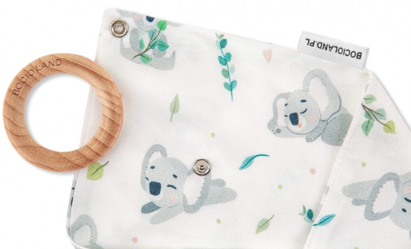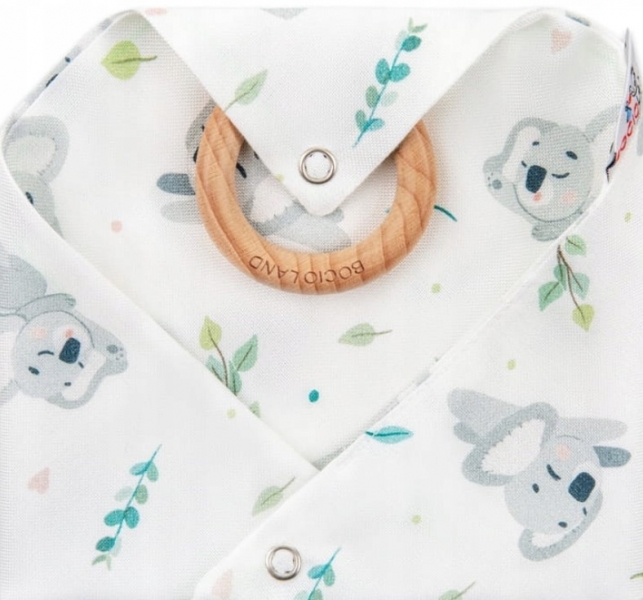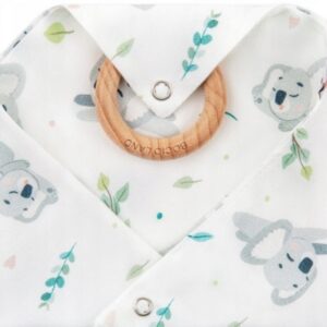 Šatka s dreveným hryzátkom svojim tvarom a spôsobom výroby plní rôzne funkcie – ako podbradník, ktorý zakrýva oblečenie bábätka pri kŕmení, tak šatka chrániaca krk, ktorá je súčasťou oblečenia bábätka. Výrobok je vyrobený z dvoch vrstiev 100% bavlneného materiálu, navyše má hryzátko vyrobené z javora.