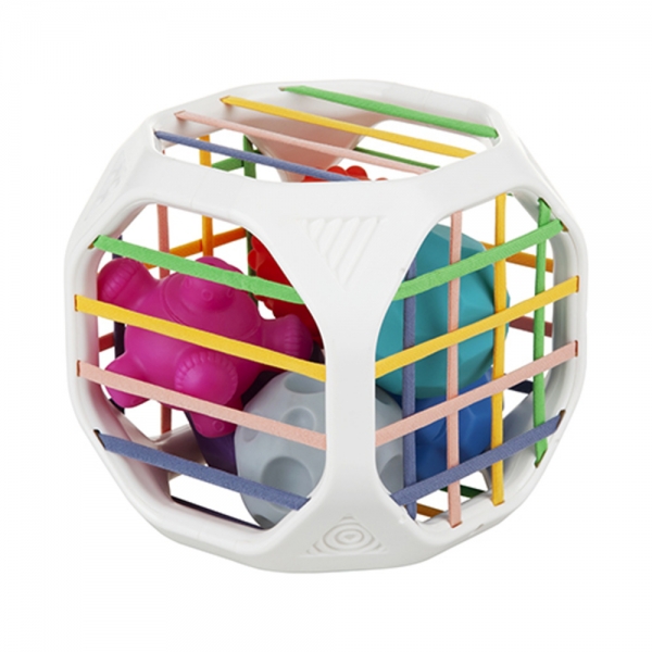 Tvar, veľkosť a hmotnosť hračiek boli starostlivo vybrané tak, aby dokonale vyhovovali manuálnym potrebám detí. Kocka uľahčuje naučiť sa chytať a držať a guličky pomáhajú pri manipulácii s prstami.