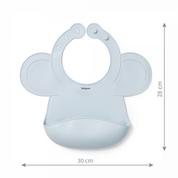 Silikónový podbradník sa dokonale prispôsobí tvaru tela bábätka a zaistí pohodlie pri nosení.