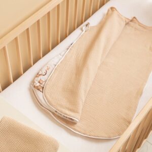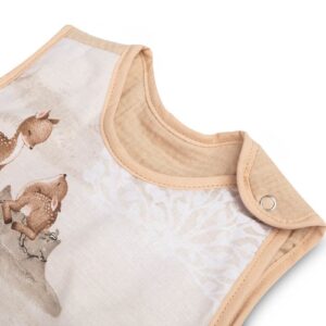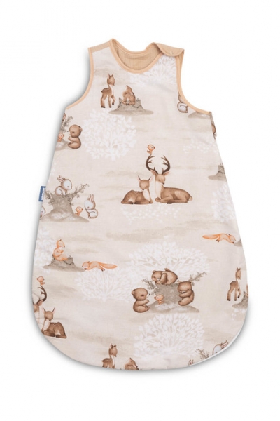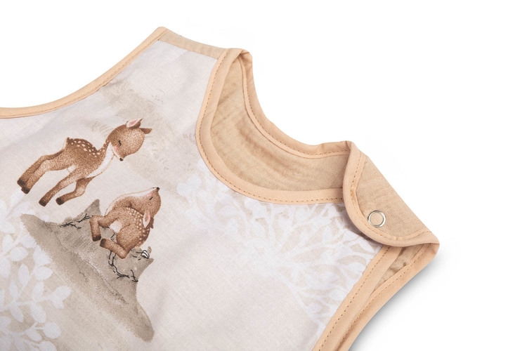 Vyrobený je z mäkkej bavlny s antialergickou výplňou, ktorá je šetrná k citlivej detskej pokožke. Vnútro a zadná strana vreca sú z jemnej mušelínovej bavlny,