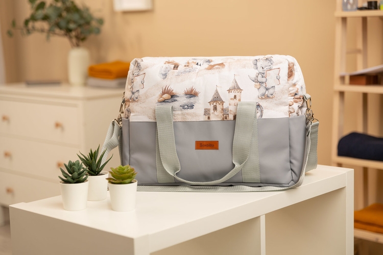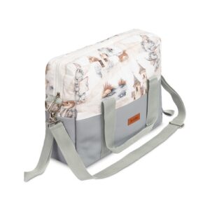 Zaobstarajte si túto tašku, ktorá je nielen funkčná, ale aj perfektným doplnkom pre moderné mamičky. Ideálna na prechádzky s kočíkom aj na bežné nosenie.