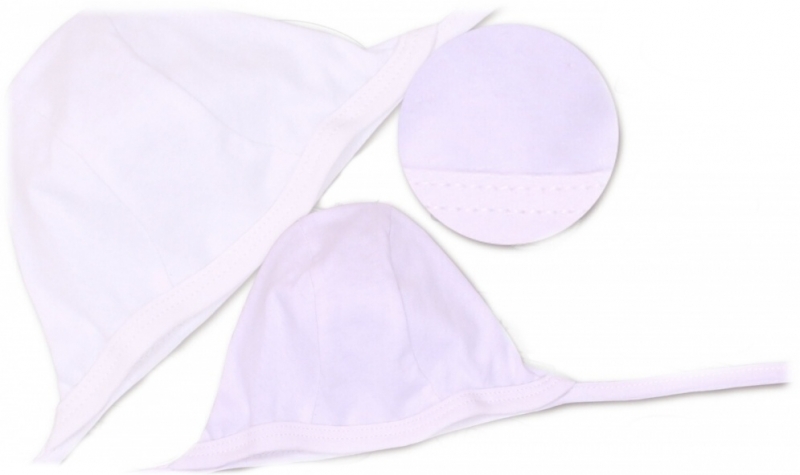 Kvalitná klasická bavlnená novorodenecká čiapočka so zaväzovaním pod krčkom.