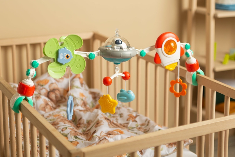 Univerzálny úchyt, vďaka ktorému je možné hračku použiť na kočík, autosedačku, postieľku aj ležadlo.