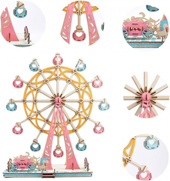 Drevené 3D puzzle – drevené skladačky sú vyrobené z 3 mm hrubej kvalitnej preglejky a sú dodávané v nezloženom tvare, balené vo fólii. Jednotlivé diely z drevenej preglejky jednoducho vytlačíte a podľa priloženého návodu krok za krokom skladáte krásne modely – drevené hračky. Deťom sa tak rozvíja ich myslenie, jemná motorika a predstavivosť. Drevené 3D puzzle nemusíte lepiť lepidlom, potom ich je možné kedykoľvek rozložiť a znovu zložiť.