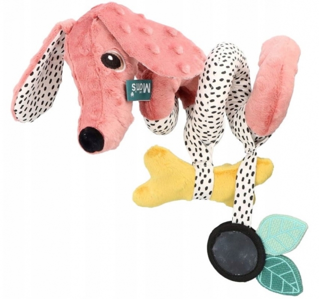 Jemný zvuk hrkálky poskytuje sluchové a zrakové podnety, vzbudzujúce záujem najmenších. Špirála zavesená pri každom kočíku sa stane jeho neodmysliteľným prvkom.