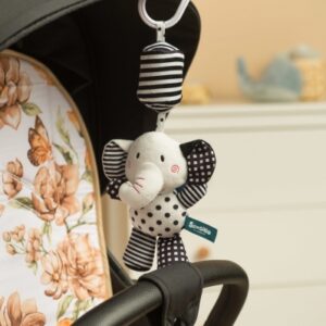čiernobielym dizajnom, ktorý stimuluje zrakové vnímanie dieťaťa, ale aj jemným a príjemným zvukom zvončeka.