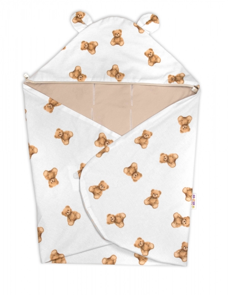 Detská zavinovačka/deka do kočíka a autosedačky s kapucňou – 90×90 cm, 100% bavlna.