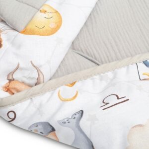 Kvalitné materiály: Vyrobený z jemnej 100% bavlny (mušelínu) s polyesterovou výplňou pre vyšší komfort.