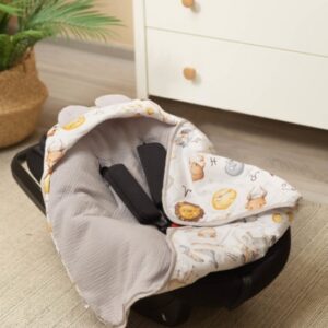 Vďaka otvorom na 3-bodové bezpečnostné pásy je mimoriadne funkčný – nemusíte odopínať pásy, aby ste mohli bábätko prikryť alebo odkryť v autosedačke či nosítku.