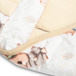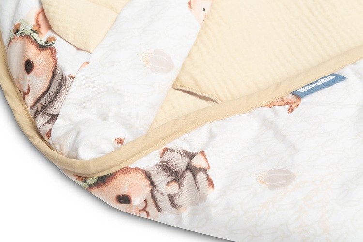Kvalitné materiály: Vyrobený z jemnej 100% bavlny (mušelínu) s polyesterovou výplňou pre vyšší komfort.
