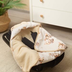 Vďaka otvorom na 3-bodové bezpečnostné pásy je mimoriadne funkčný – nemusíte odopínať pásy, aby ste mohli bábätko prikryť alebo odkryť v autosedačke či nosítku.