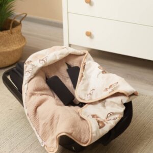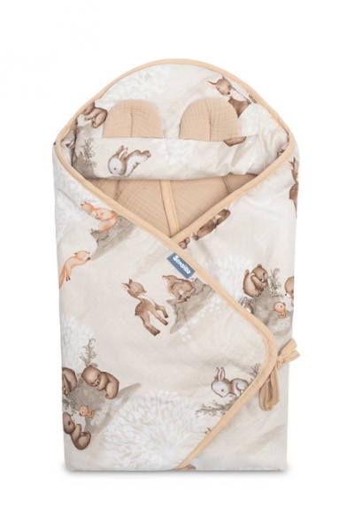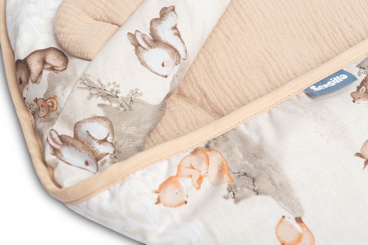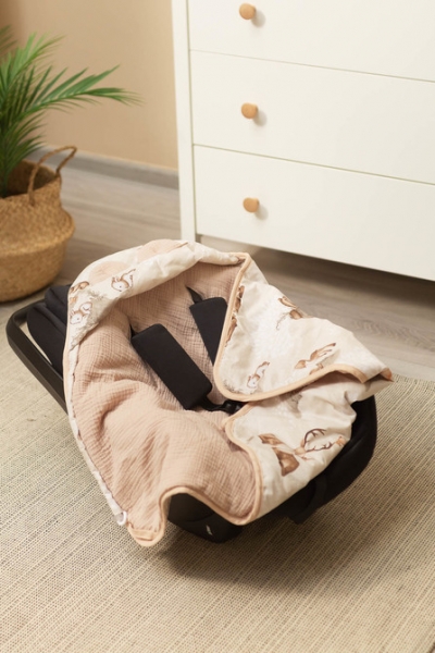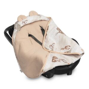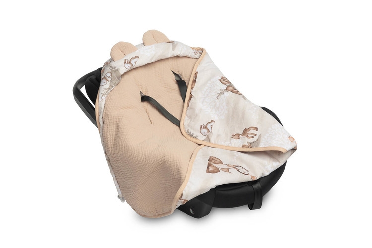 Zavinovačka 2v1 do autosedačky, kočíka, mušelín, bavlna – Zábava v lese, béžová